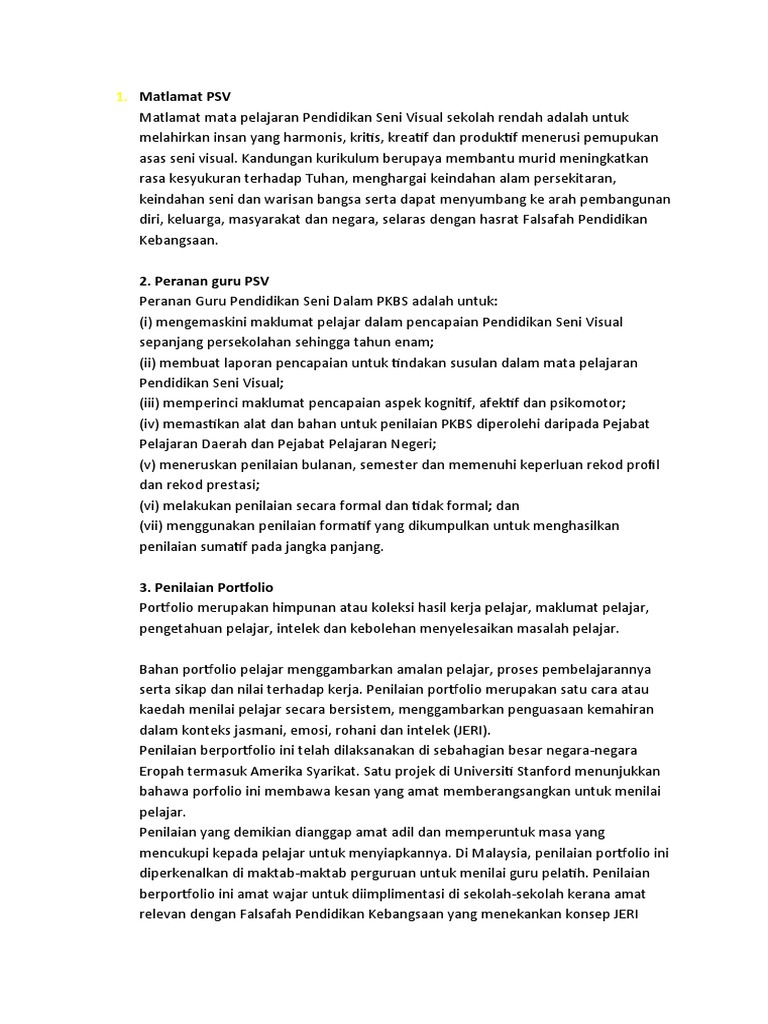 Berikut ini adalah contoh-contoh penilaian dalam Pendidikan Seni Visual. Sila Like Share post ini di facebook anda. Pendidikan Muzik lama 3.