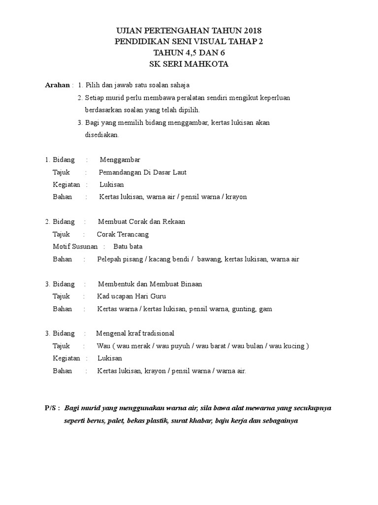 Ujian Mac Pendidikan Seni Tahun 6 Pdf